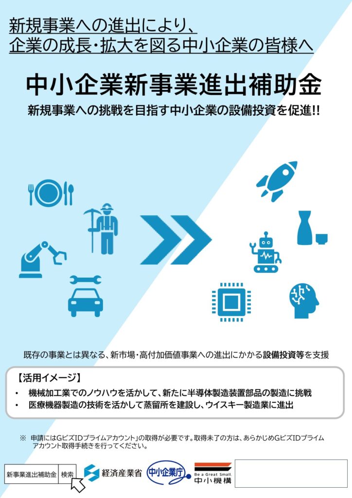 詳細は「中小企業新事業進出補助金」のHPをご覧ください